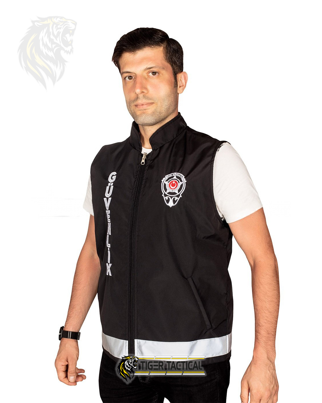 Güvenlik yeleği çift taraflı olarak kullanılabilir; görev bitiminde ters çevrildiğinde sivil yelek görünümüne dönüşür.